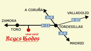 Apenas a 10 km de Toro, ciudad de realengo, y a 20 km de Tordesillas, lugar de privilegio, posee la ubicación adecuada para conocer el corazón de Castilla y las raíces de España.